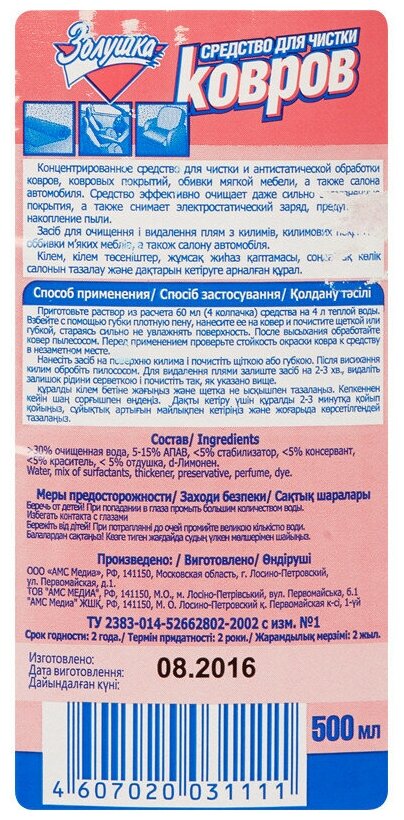 Ниже Вы можете прочитать отзывы на Золушка Средство для чистки ковров с антистатиком, 0.5 л, ознакомится с подробными характеристиками, посмотреть интересные обзоры и фотографии на Золушка Средство для чистки ковров с антистатиком, 0.5 л.