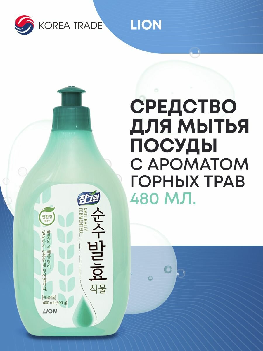 Средство для мытья посуды, овощей и фруктов LION Горные травы Chamgreen Pure Fermentation, 480 мл