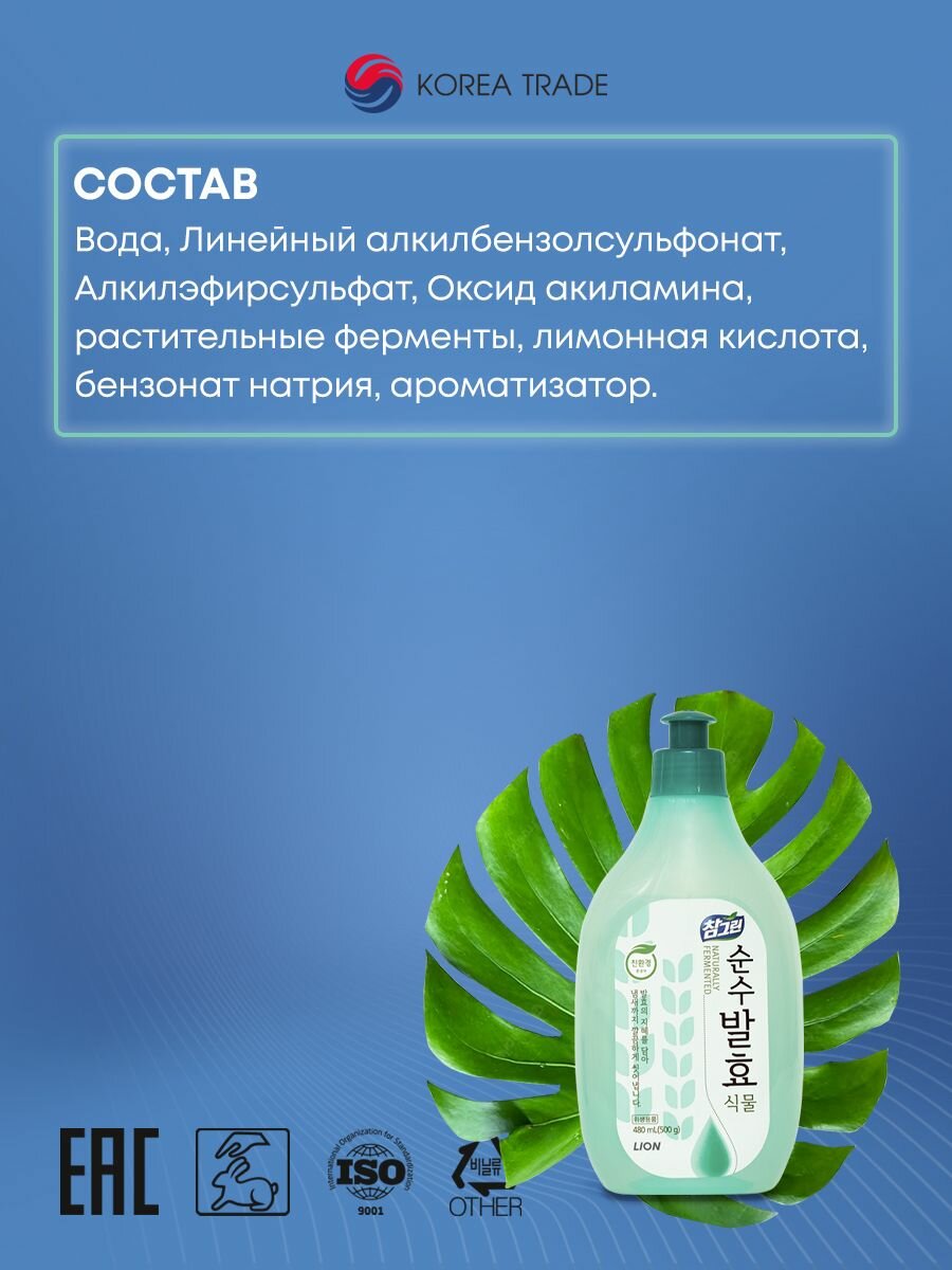 Средство для мытья посуды CJ Lion Chamgreen Pure Fermentation Растительные ферменты, 1200мл 304125