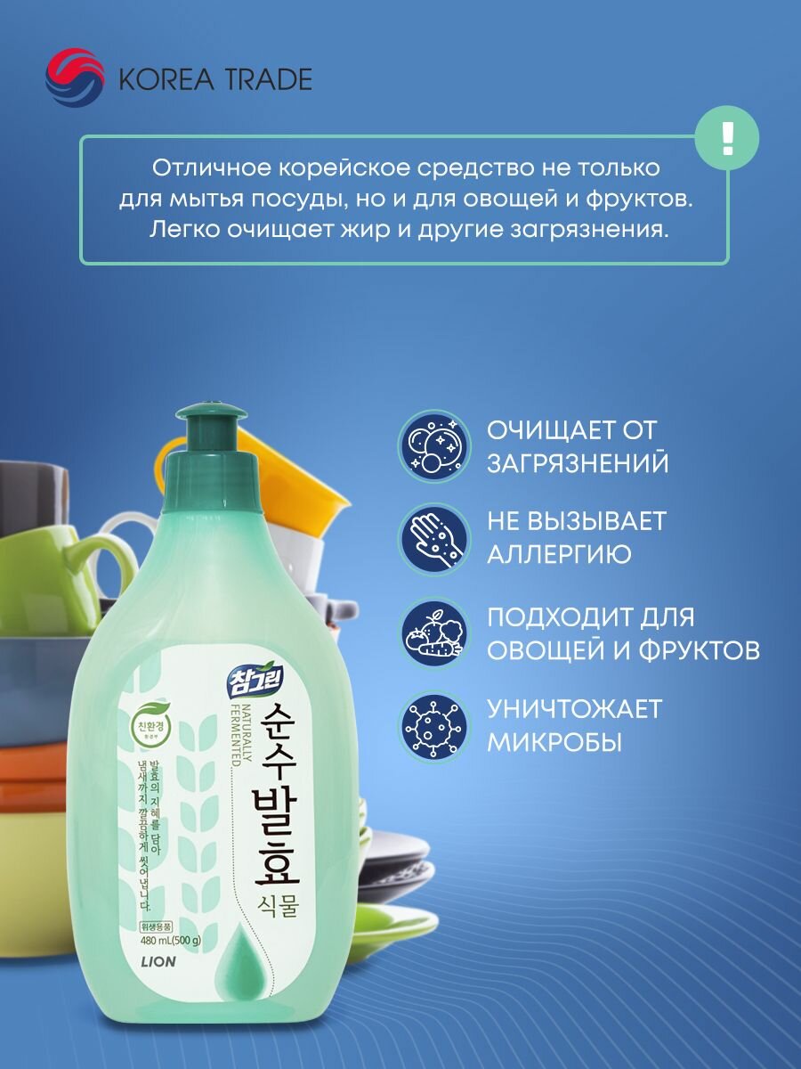 CJ Lion Средство для мытья посуды Chamgreen Pure Fermentation Растительные ферменты, 720 мл