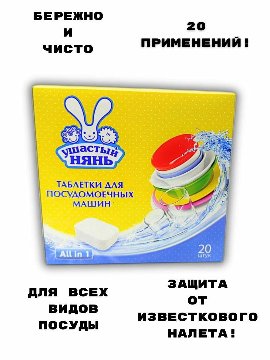 Ушастый Нянь Таблетки для посудомоечной машины, 20 штук в упаковке