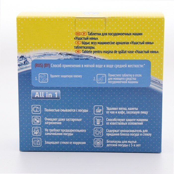 Таблетки для посудомоечной машины Ушастый Нянь All in 1 таблетки, 20 шт., коробка