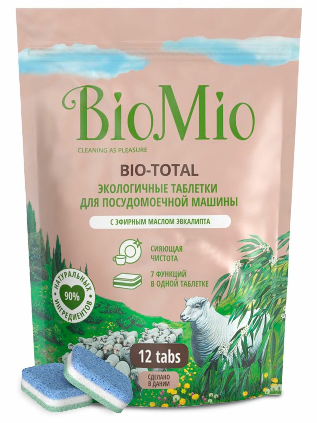 Эко таблетки для посудомоечной машины 7-в-1 BioMio BIO-TOTAL, с эфирным маслом эвкалипта, 12 шт.