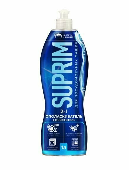 SUPRIM/ Ополаскиватель для посудомоечных машин/ Для мытья посуды/ Гель для посудомоечных машин/ Средство для посудомоечных машин/ Средство для посуды/ Ополаскиватель для посудомоечной/ Для посудомоечной/ 2 в 1 Suprim 1л (Беларусь)