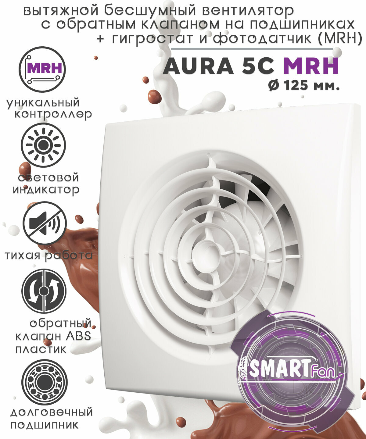 Вентилятор вытяжной DiCiTi AURA 5C MRH, 125 мм c обратным клапаном, фотодатчиком, таймером и датчиком влажности