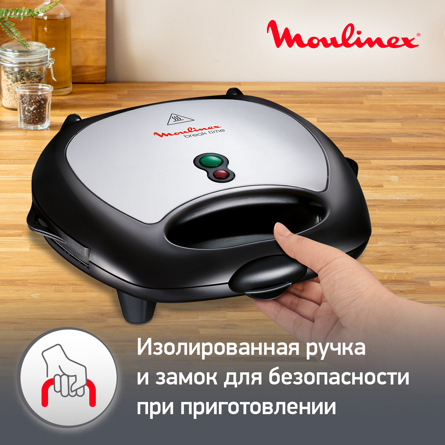 Moulinex Сендвичница MOULINEX SW611812, 700 Вт, антипригарное покрытие, чёрно-серебристая
