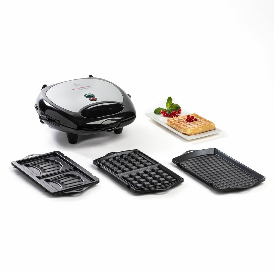Moulinex Сэндвичница MOULINEX SW611812, 700 Вт, антипригарное покрытие, чёрно-серебристая