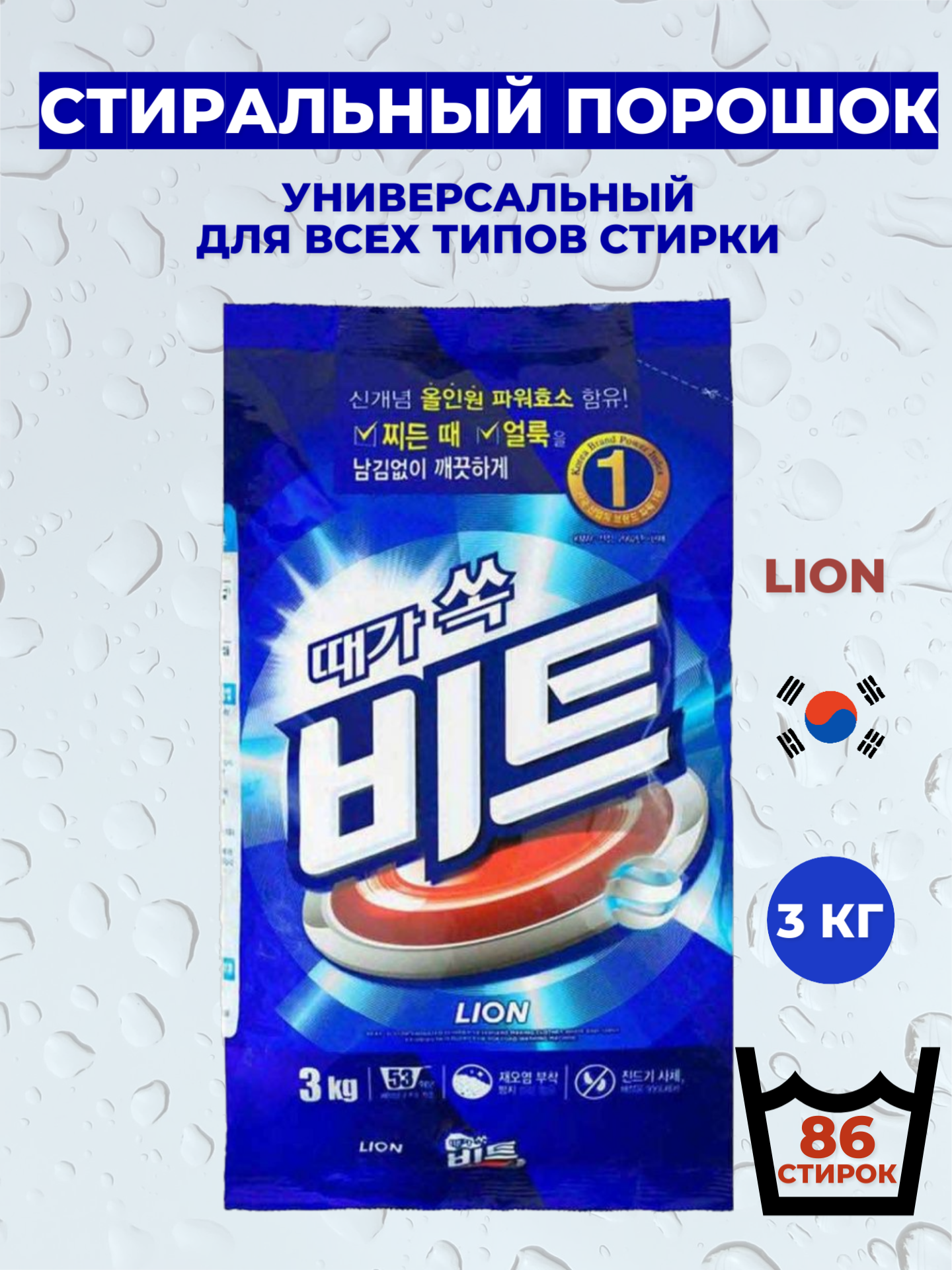 Стиральный порошок 3 кг, BEAT, Lion, 8801007650449