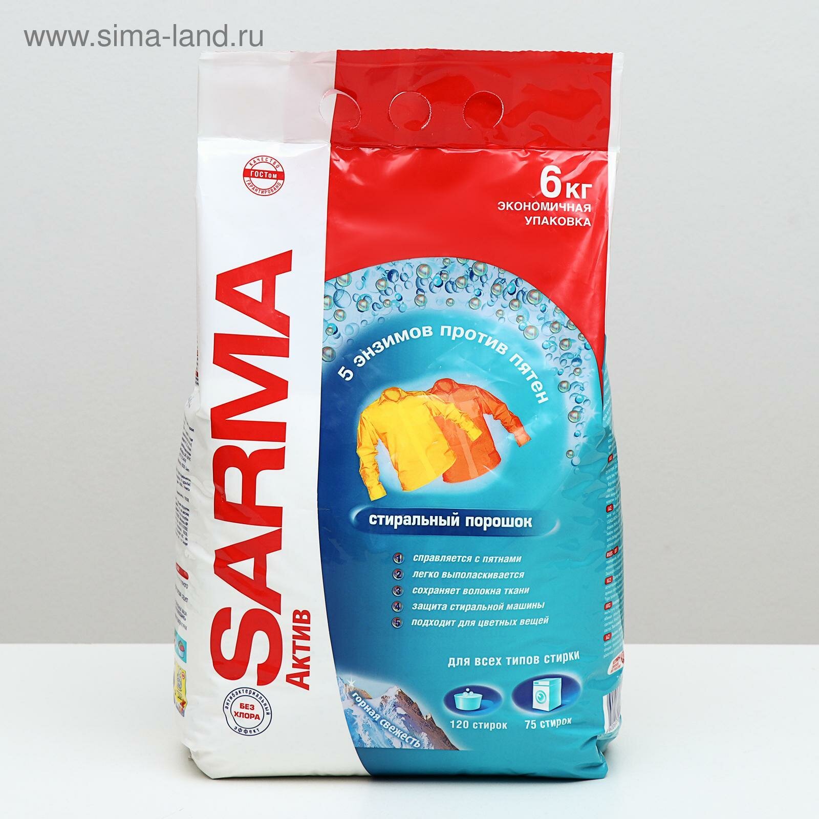 Порошок стиральный SARMA Актив для любого вида белья аромат горная свежесть для всех типов стирки 6кг / моющее средство