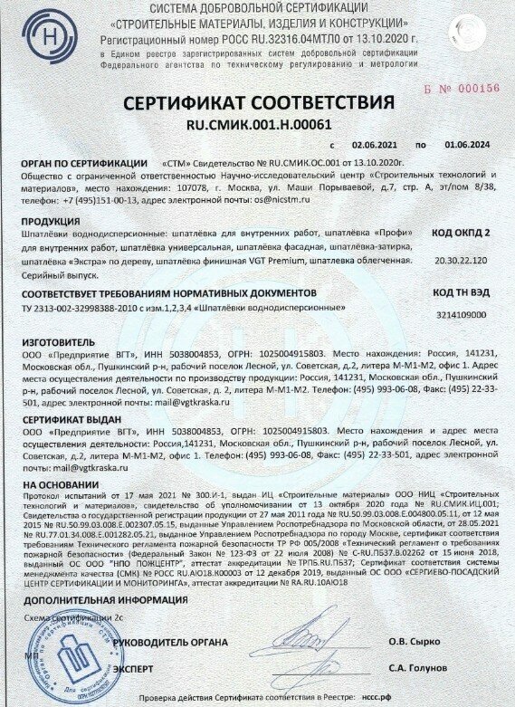 | Минусы: | Покупал шпаклевку VGT правда не универсальная, а для трещин и сколов. Заявленным характеристикам не отвечает, трещины как были, так и появились снова после шпаклевания этой шпаклевкой |