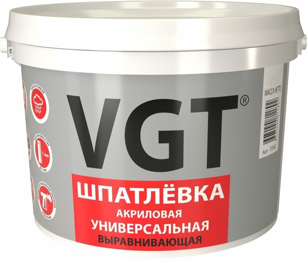 VGT Универсальная акриловая шпаклевка 7,5 кг для наружних и внутренних работ VGT 55983