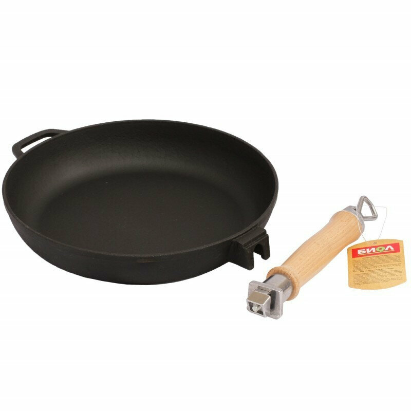 Сковорода чугун, 20 см, Биол, 0120, съемная ручка, с деревянной ручкой, индукция