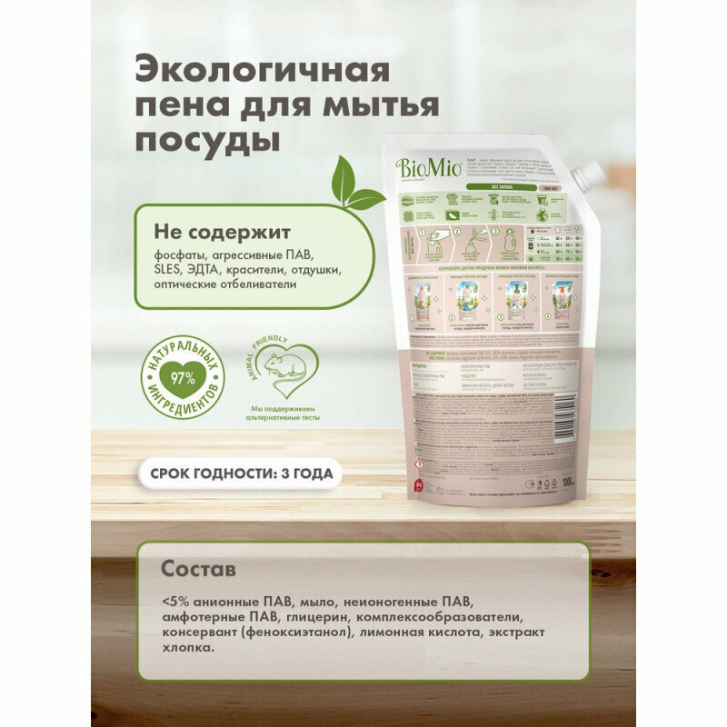 Гель для стирки деликатных тканей BioMio Bio-Sensititve без запаха, экологичный, сменный блок, 1000 мл