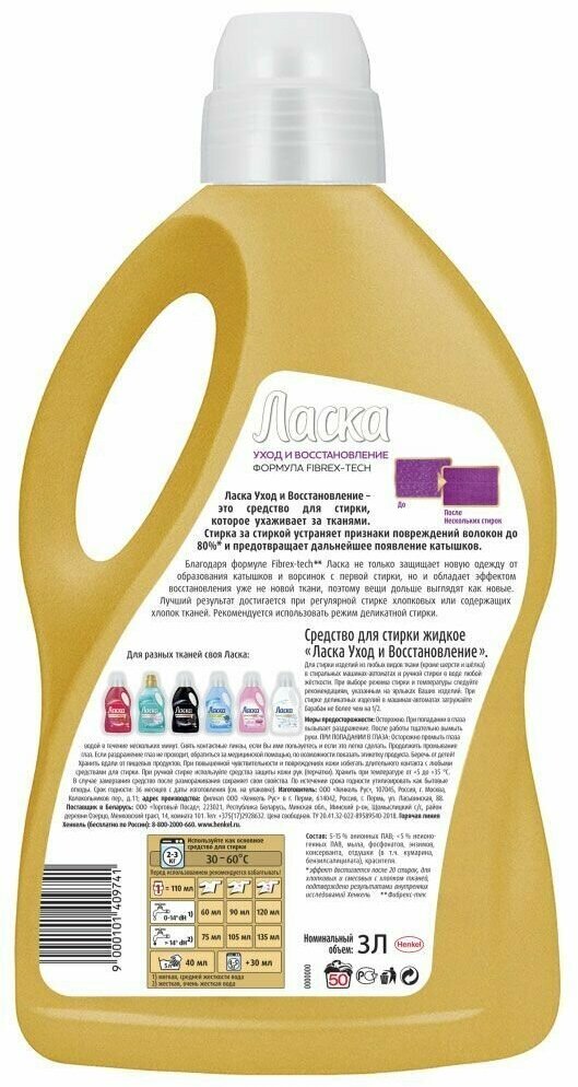 Гель для стирки Ласка «Уход и восстановление», универсальный, 1л