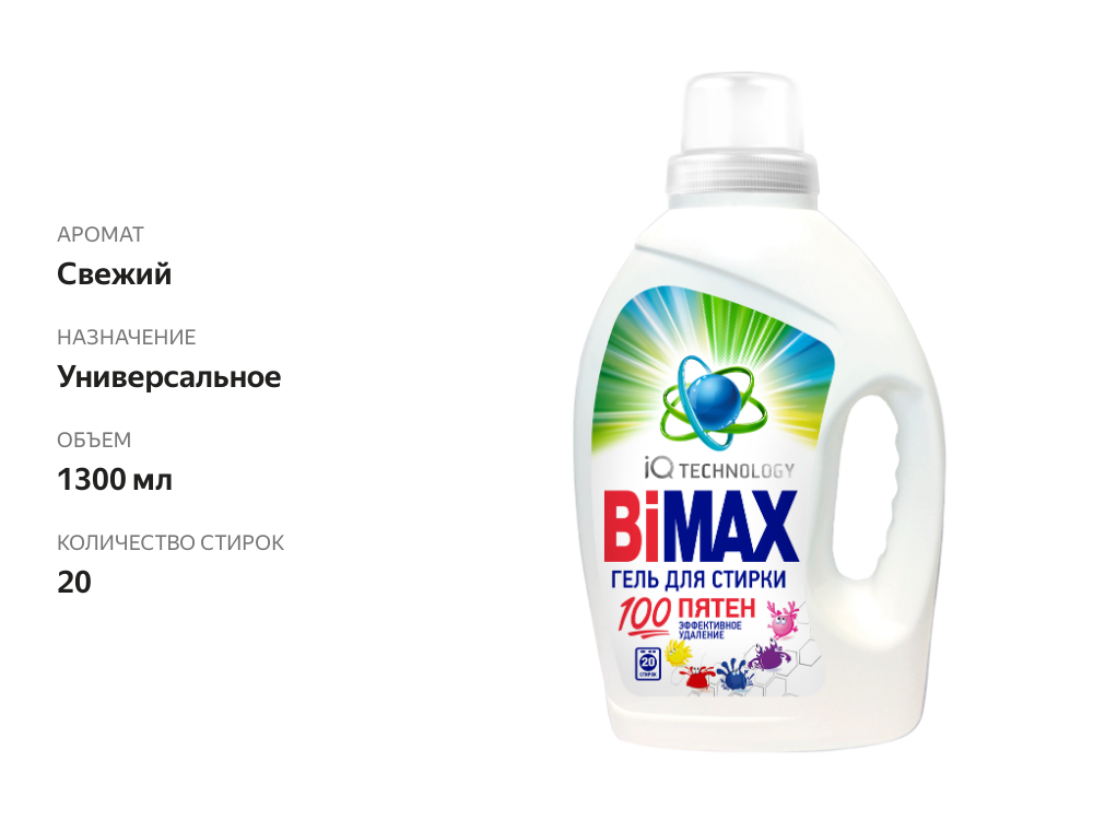 Гель для стирки Bimax BiMax 100 пятен, 1950 г, IQ smart.