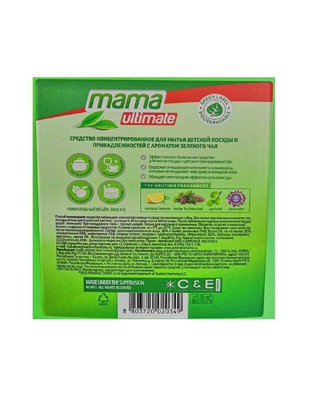 Средство-концентрат для мытья посуды, фруктов, овощей и детских принадлежностей Mama Ultimate, зеленый чай, 1 л