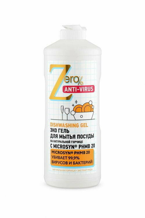 Купить Zero Гель для мытья посуды Anti-virus, на натуральной горчице, 500 мл