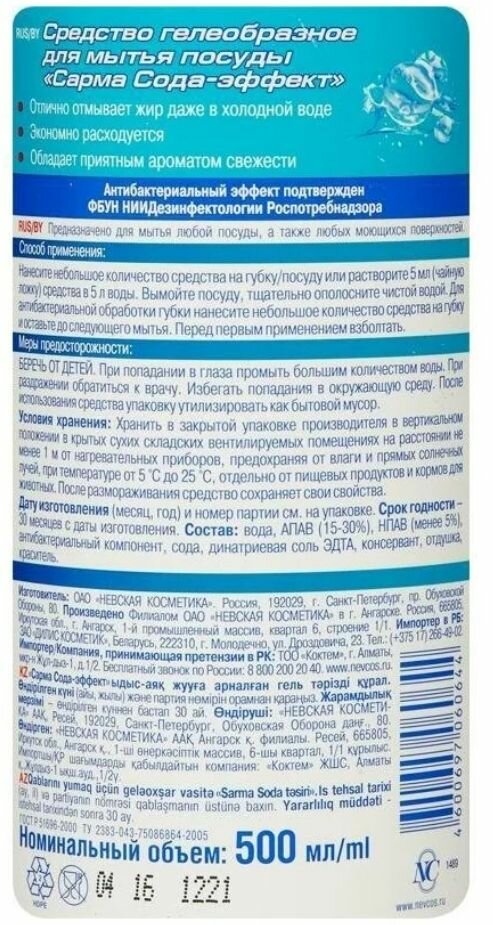 Купить Sarma Гель для мытья посуды Сода-эффект 500 мл