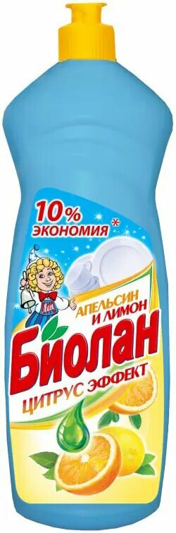 Биолан Средство для мытья посуды Апельсин и лимон, 0.9 л, 0.9 кг