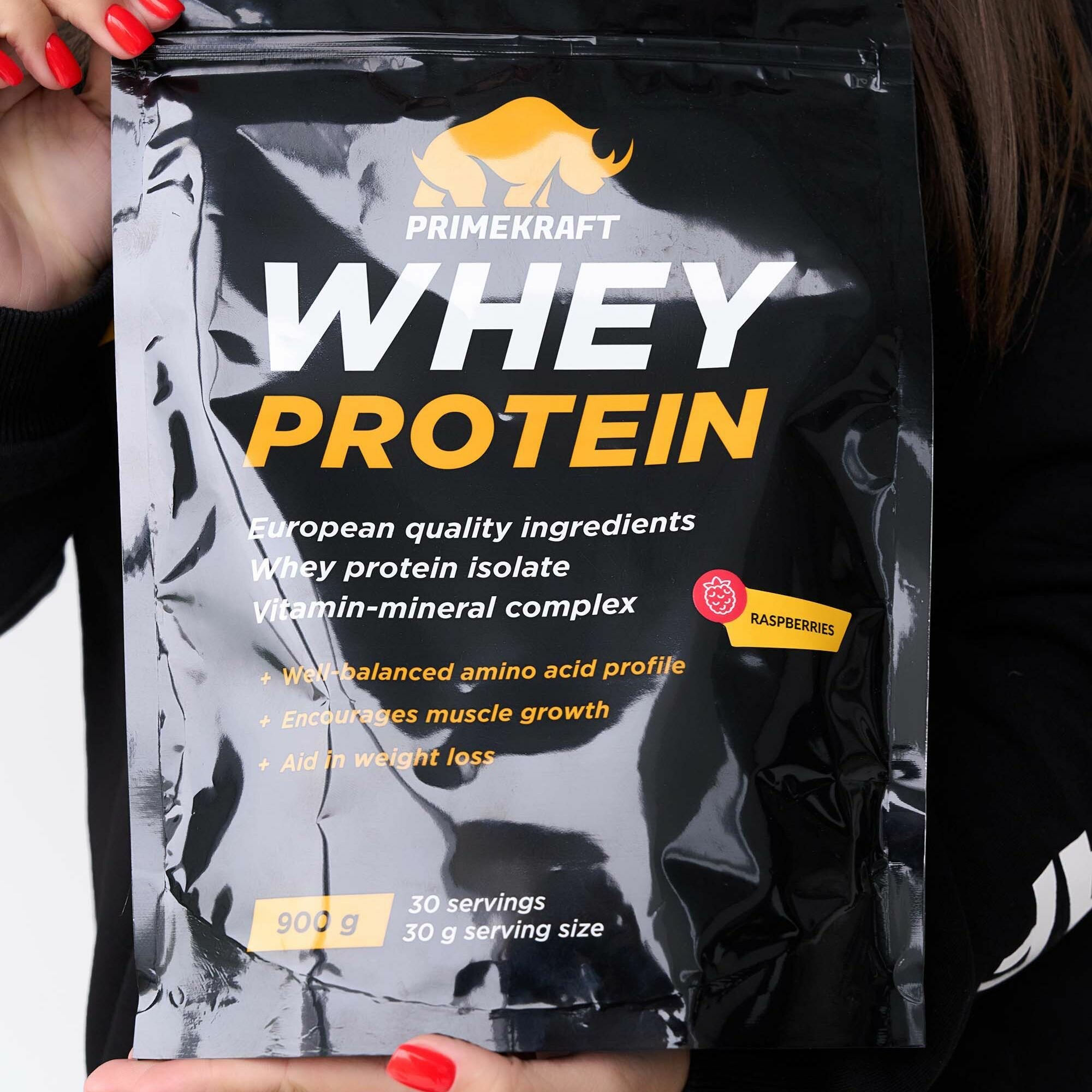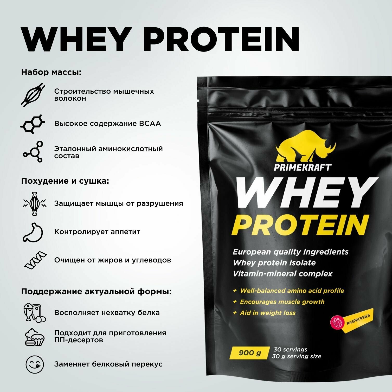 Купить Протеин сывороточный PRIMEKRAFT Whey Protein, Малина 900 г / 30 порций