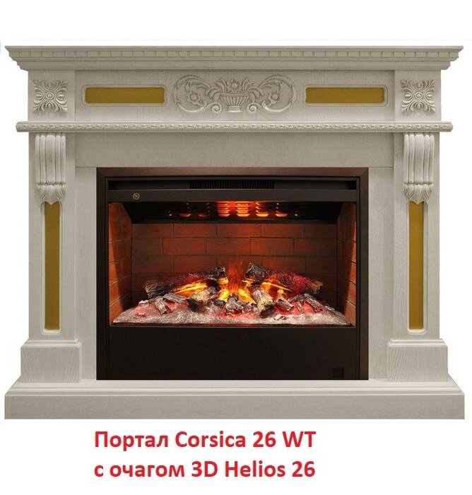 Электрокамин Real Flame Corsica Lux 25.5/26 WT-619G с очагом 3D Helios 26 SBG