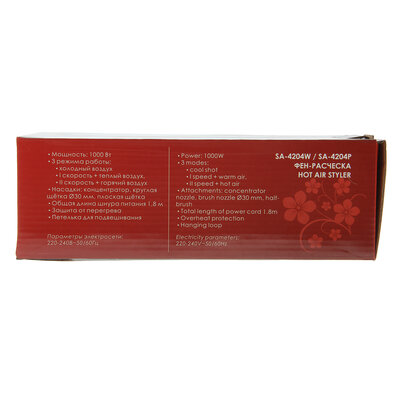 Фен - терморасческа SAKURA SA-4204 P (1.0кВт, 2 реж, 3 нас), (10)