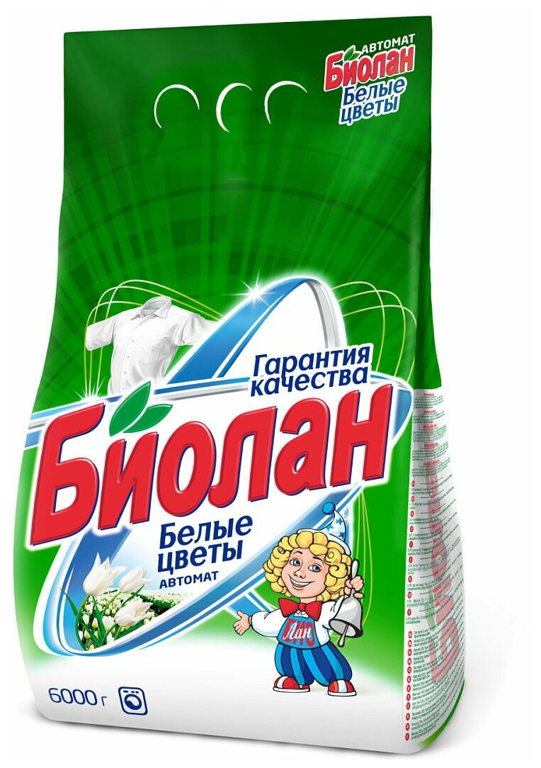 Стиральный порошок автомат 6 кг, БИОЛАН "Белые цветы" Комплект - 1 шт .