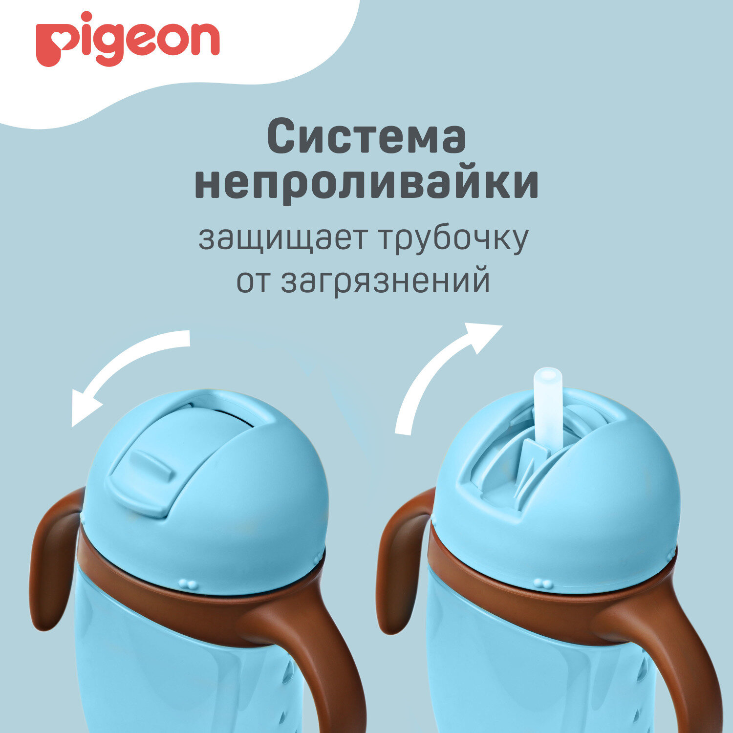 Поильник Pigeon высокий с трубочкой, голубой 9+ мес