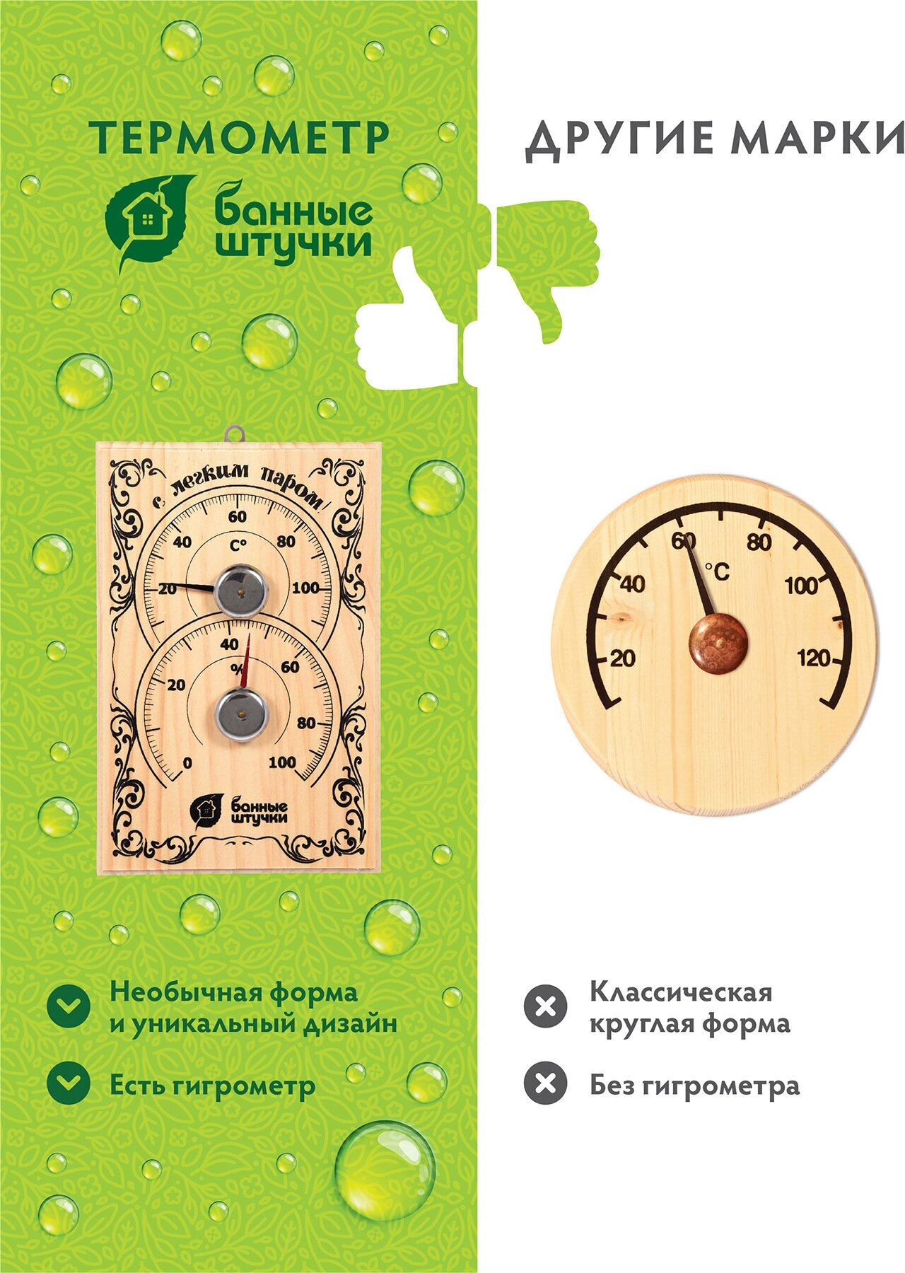 Термометр с гигрометром для бани и сауны Банные штучки С легким паром, 18 х 12 х 2,5 см