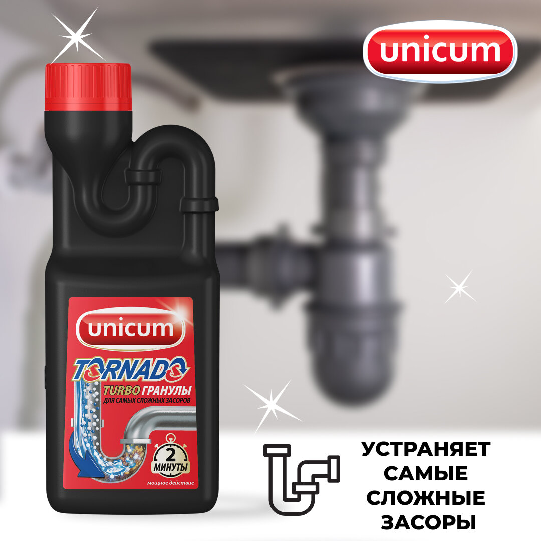 Чистящее средство для прочистки сливных труб в ванной кухни удаления засоров растворение волос жира UNICUM торнадо гранулы 600 г