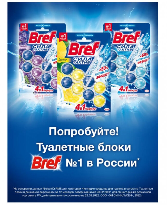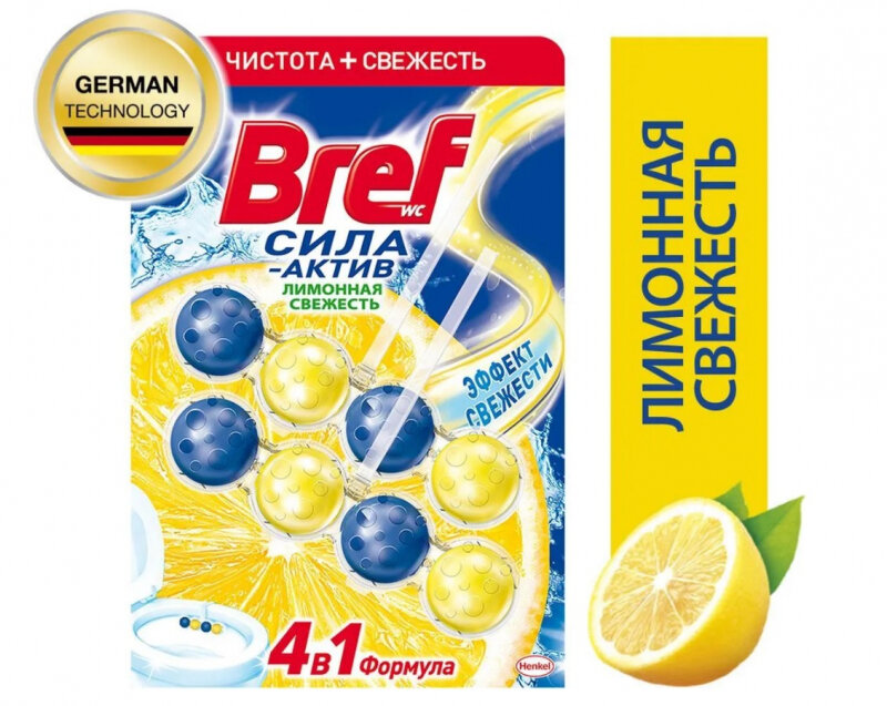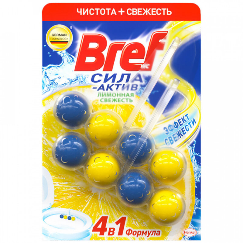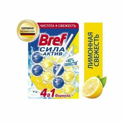 Гигиенический блок для унитаза Bref "Сила-Актив. Лимонная свежесть", 2x50г, блистер (9000100656832)