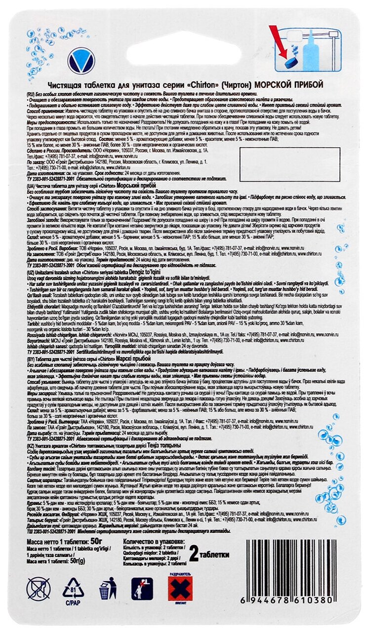 Chirton таблетка для унитаза Морской прибой, 2 шт., 0.05 кг
