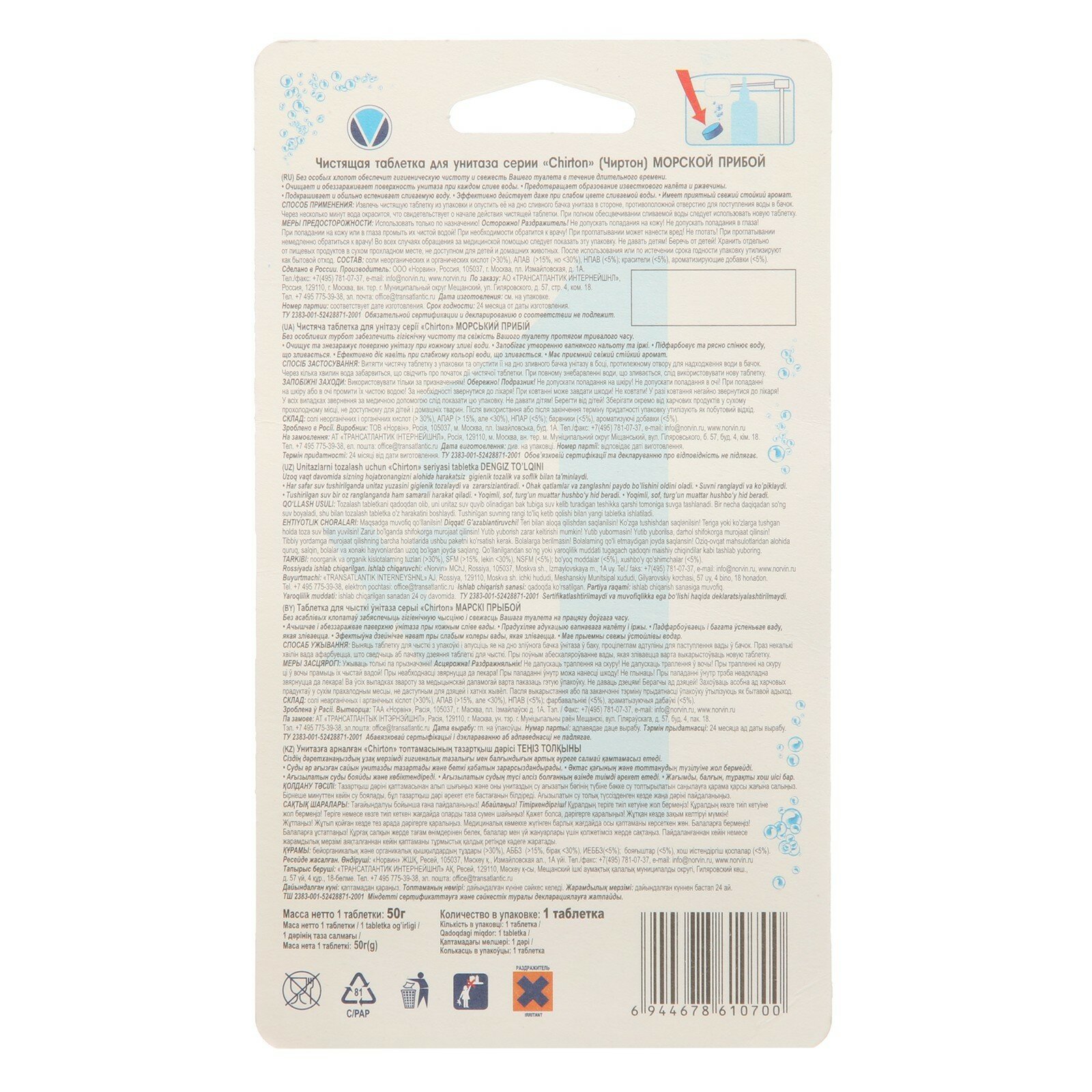 Таблетка д/унитаза чиртон 50г Море
