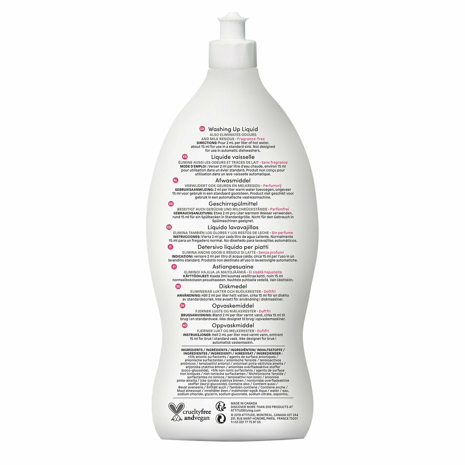 Средство для мытья посуды Attitude гипоаллергенное без запаха, 700 мл (Канада)