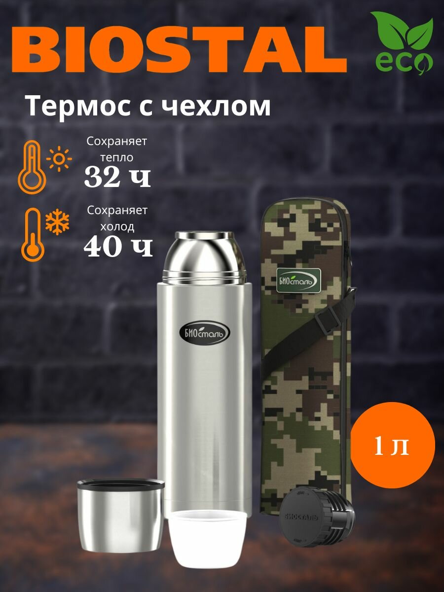 Термос биосталь Охота NBP-1000 B с термочехлом, 1,0л, серебристый