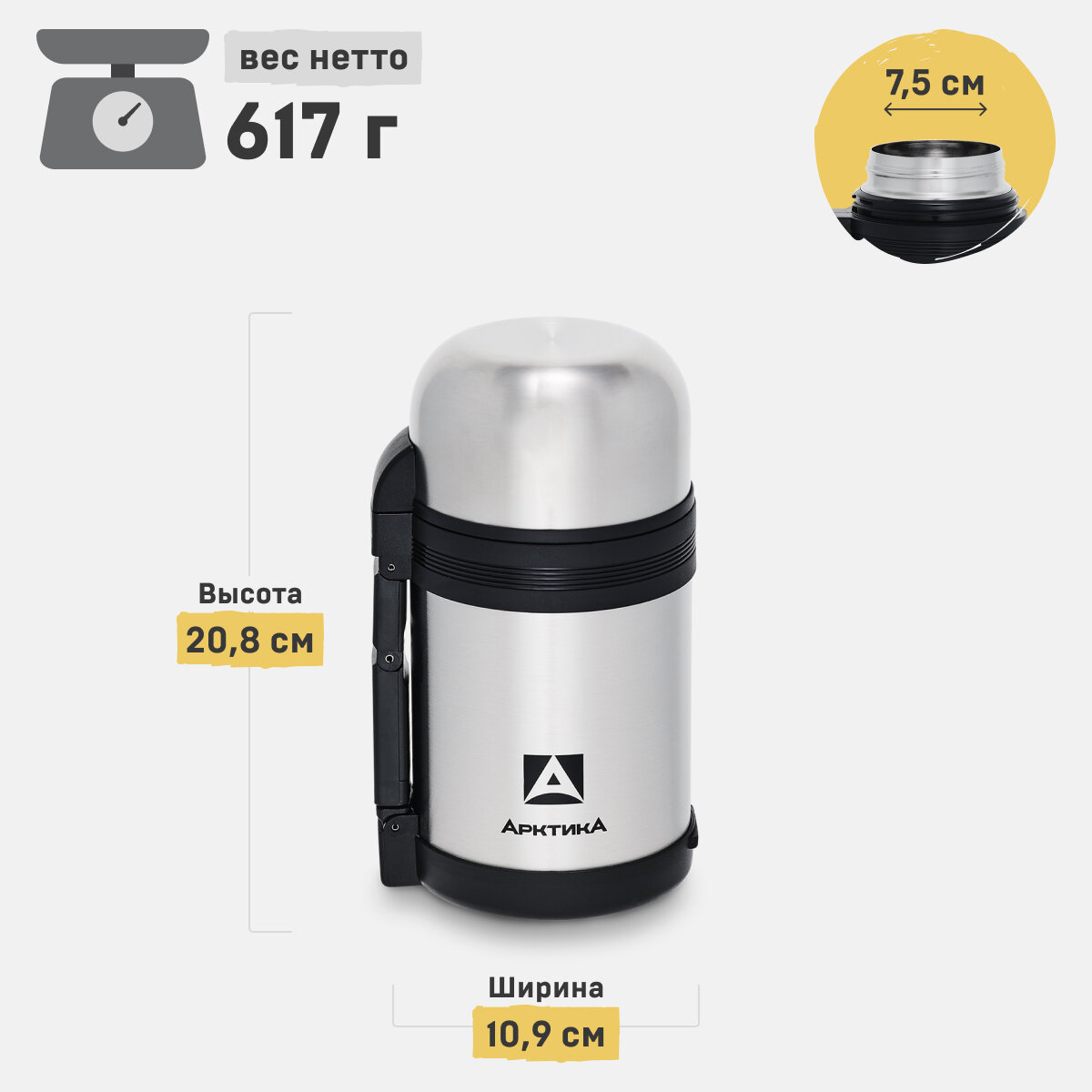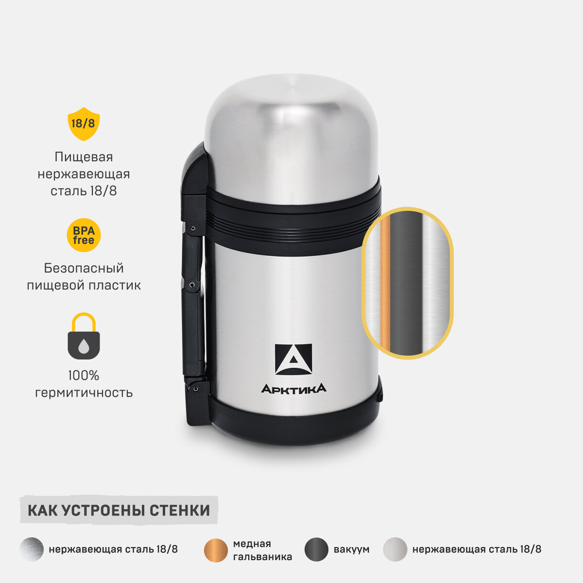 Термос с ручкой для чая и еды Арктика 201-1000 - Объем 1000 мл - Сталь