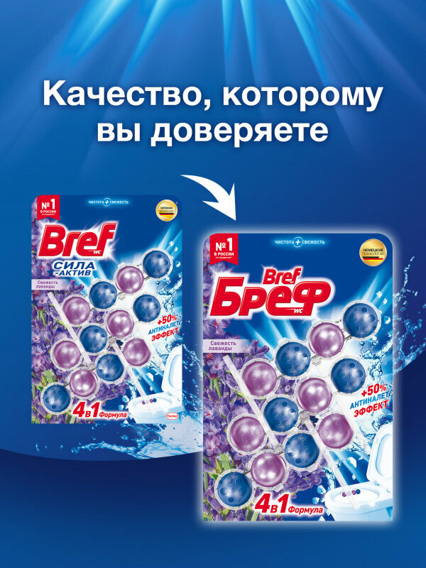 Bref Блок для чистки и свежести унитаза 4 в 1 Bref Сила актив «Свежесть лаванды», 50 г