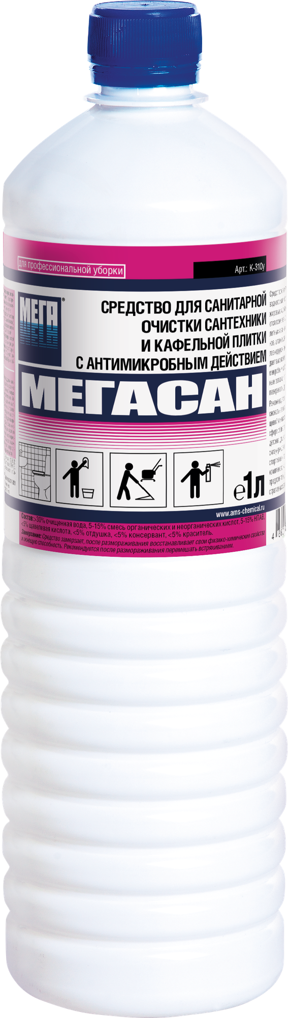 Купить Средство для уборки санитарных помещений 1 л, мегасан, дезинфицирующее, концентрат, К 310 у В комплекте: 1шт.