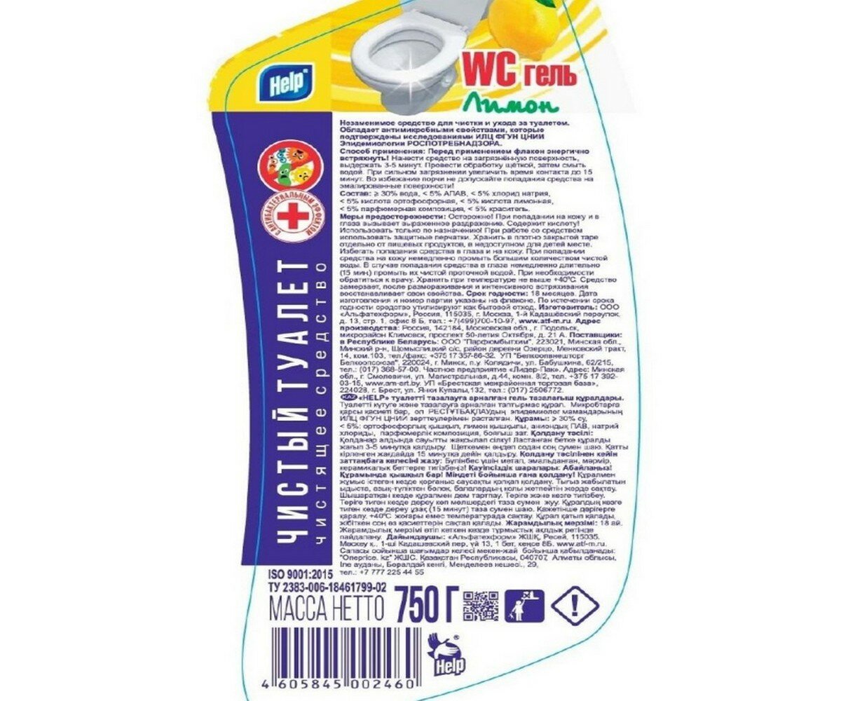 Гель Чистый туалет лимон Help, 750 мл, 0.75 г