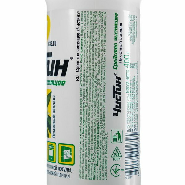 Ниже Вы можете прочитать отзывы на Чистящее средство 400 г, чистин "Лимонный всплеск", порошок, ознакомится с подробными характеристиками, посмотреть интересные обзоры и фотографии на Чистящее средство 400 г, чистин "Лимонный всплеск", порошок.