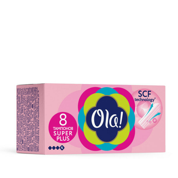 Тампоны Ola / Ола гигиенические Super Plus 4 капли без аппликатора, коробка 8шт. / женская гигиена