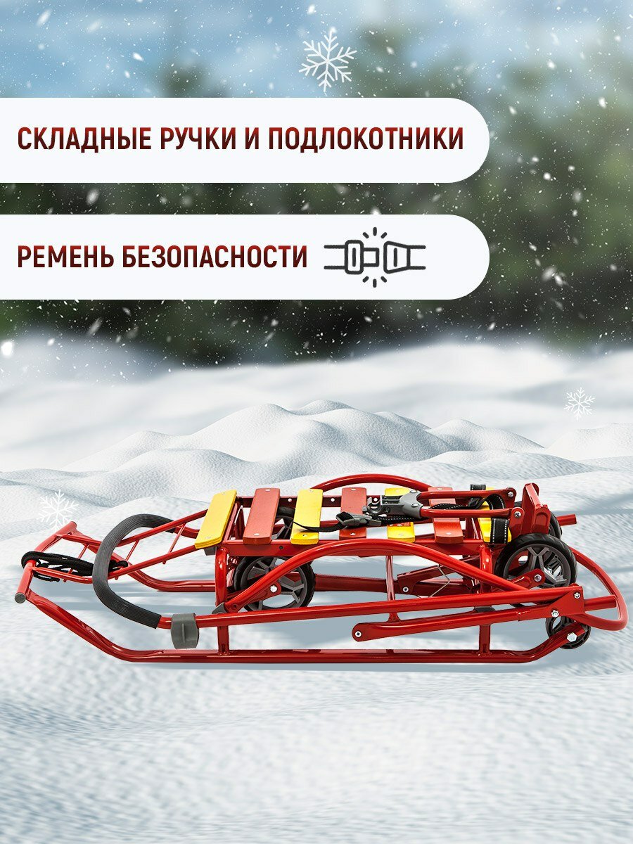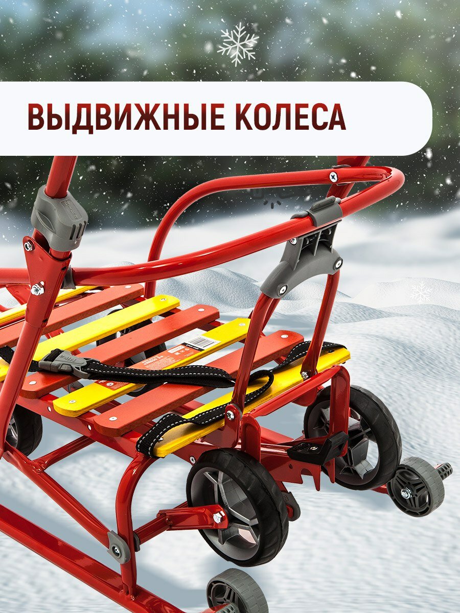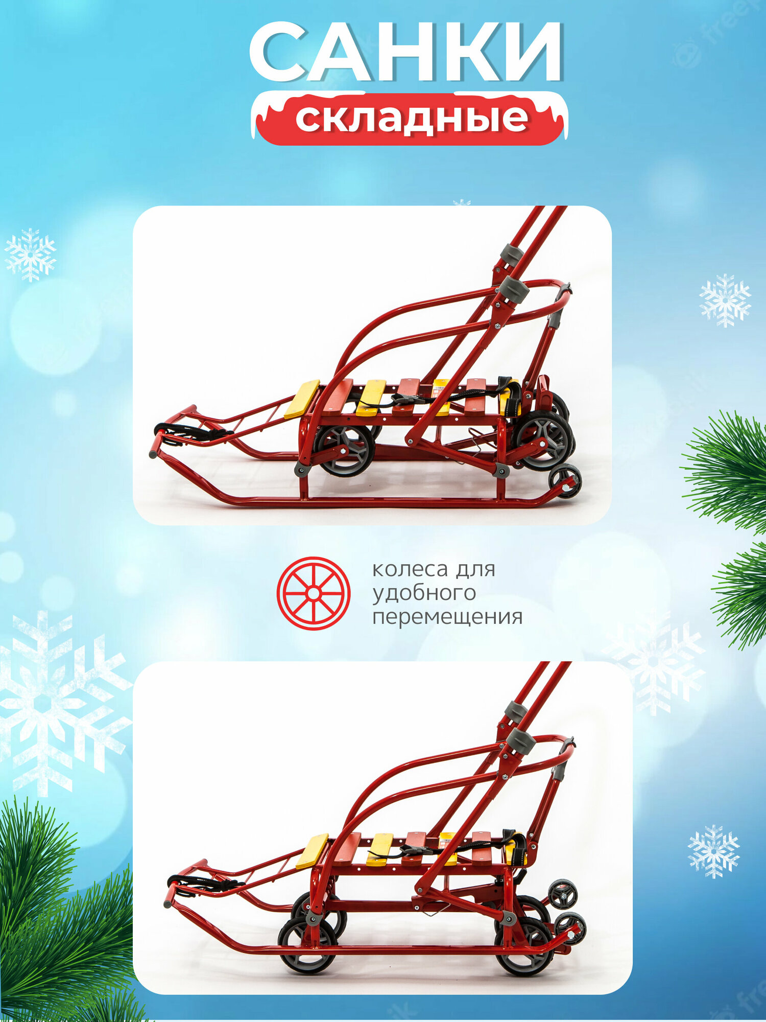 Санки детские складные Nikki 3, с колёсами, с ручкой, цвет красный