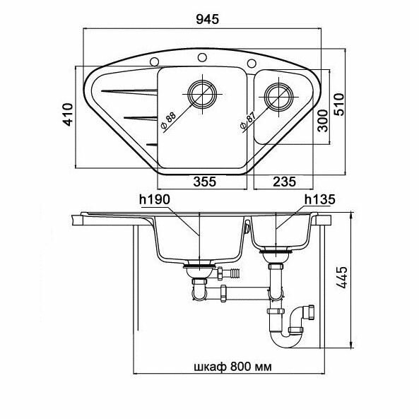 Мойка кухонная трапецевидная, угловая Ewigstein Wink (W-80KF черный)