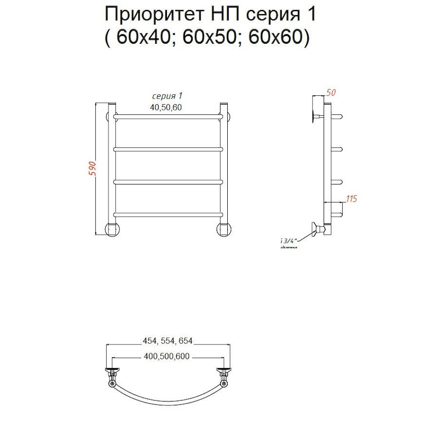 Полотенцесушитель Приоритет НП 1 60*50 (ЛЦ2 60*50) (с углами)
