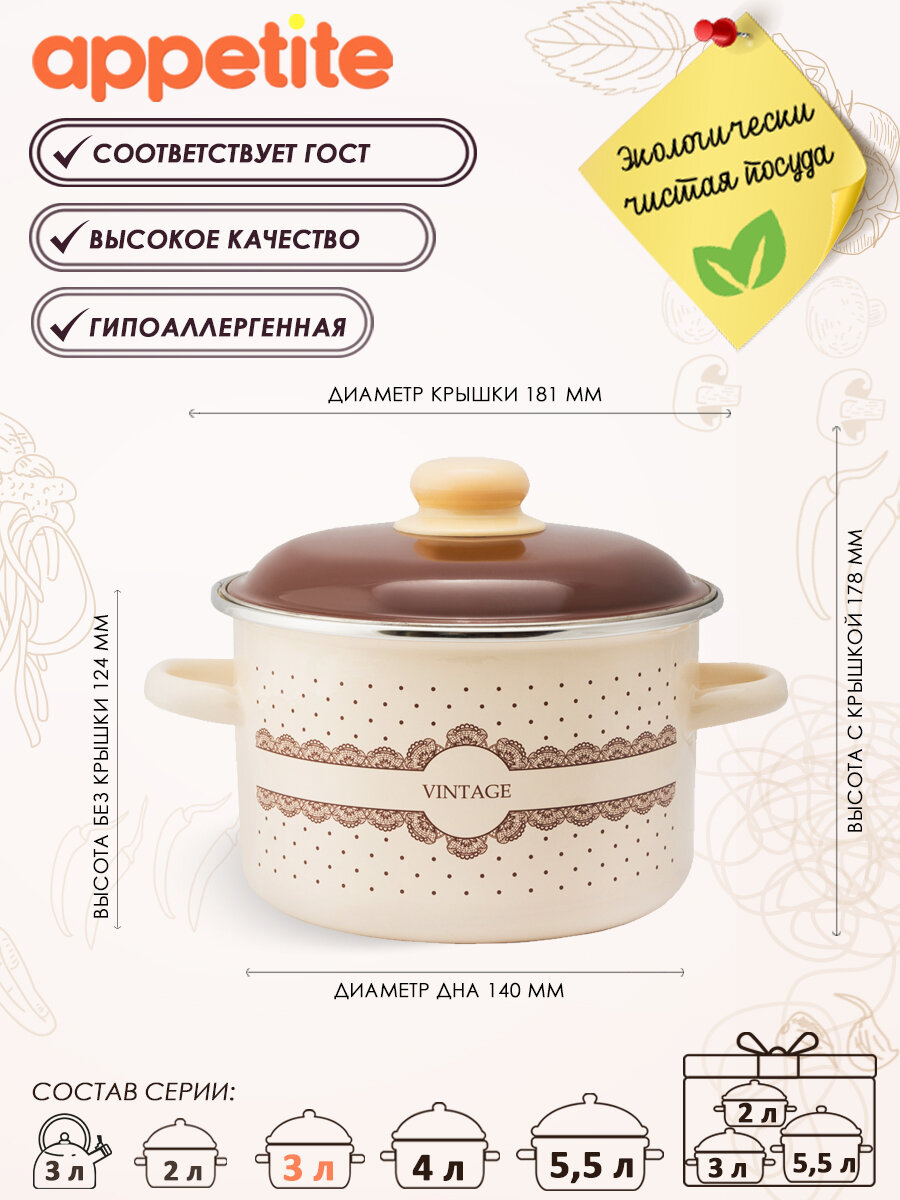 Кастрюля эмалированная Vintage 3 л. Appetite