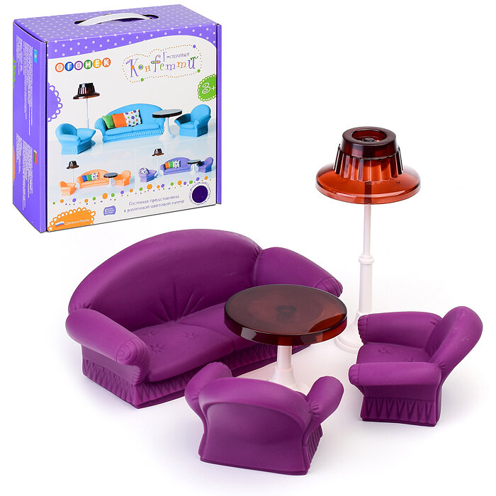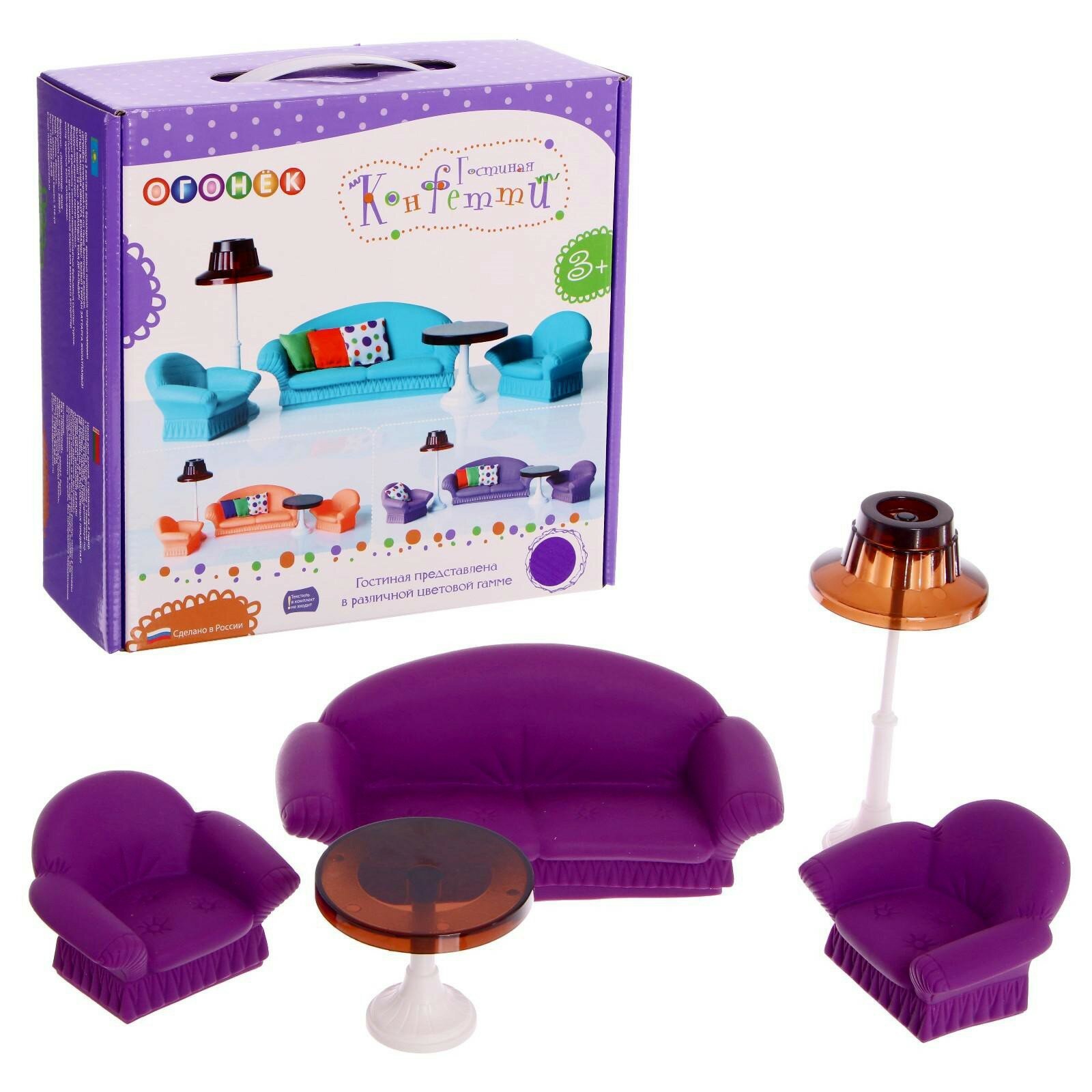 Купить Набор мебели для кукол Огонек Гостиная, "Конфетти", фиолетовая (С-1580)