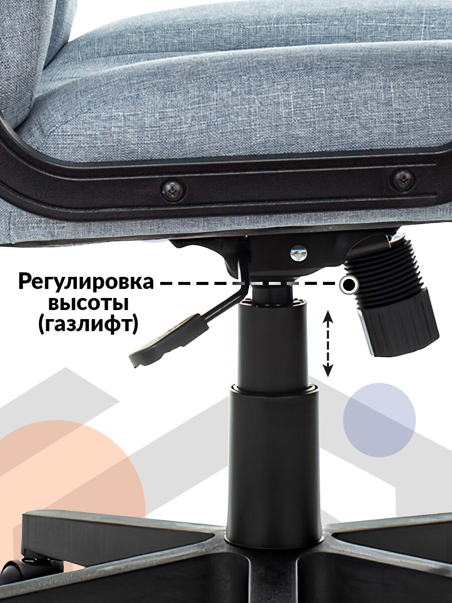- Удобная посадка. - Газ-лифт до 180 кг. - В нижнем положении высота от пола до верхней границы подлокотников 65 см, поэтому помещается под стол с возможностью использовать механизм качения. - Тканевая обивка - серый цвет мне понравился больше и показался практичнее. - Простая сборка крестовой отверткой, минимум деталей. - Цена - брал за 5000 в феврале 2020. |