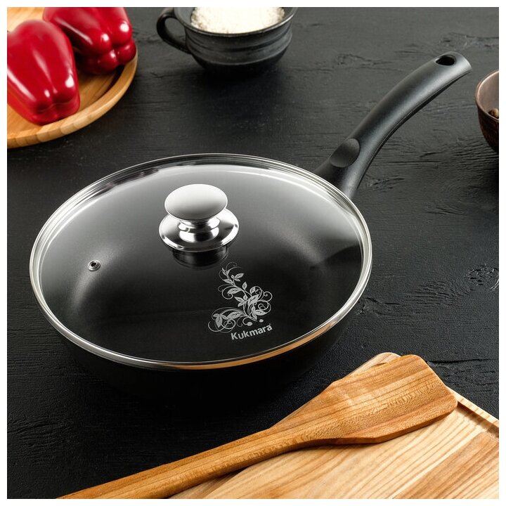 Сковорода Kukmara 24/6 см с ручкой, со стеклянной крышкой, АП (с242а)