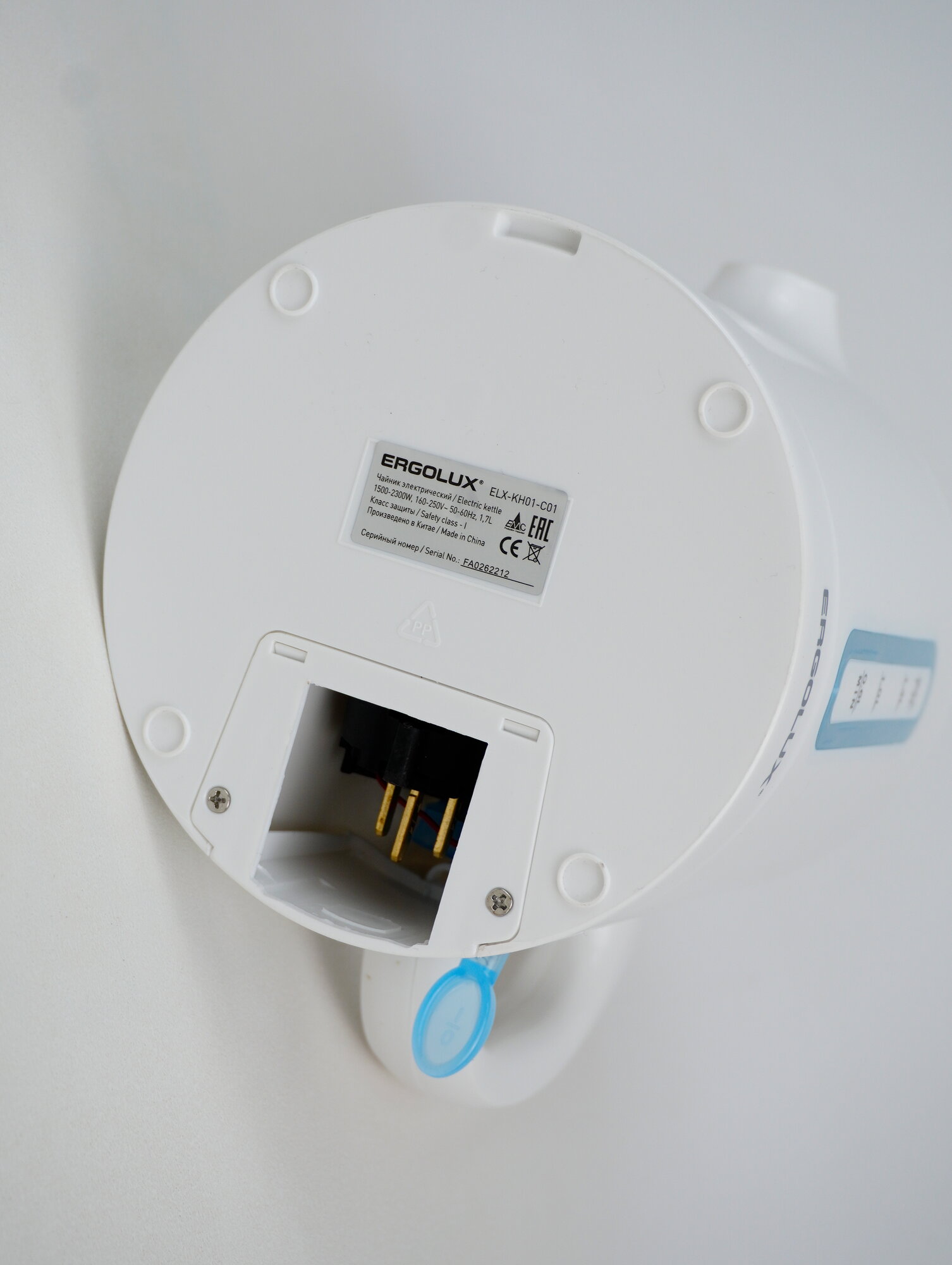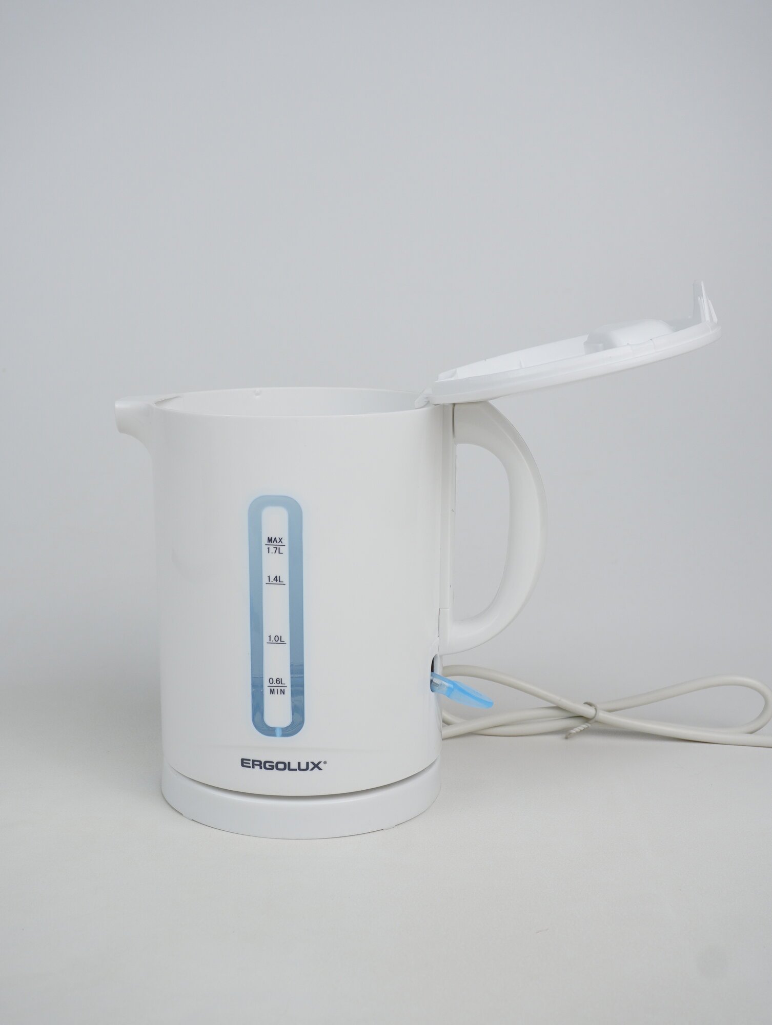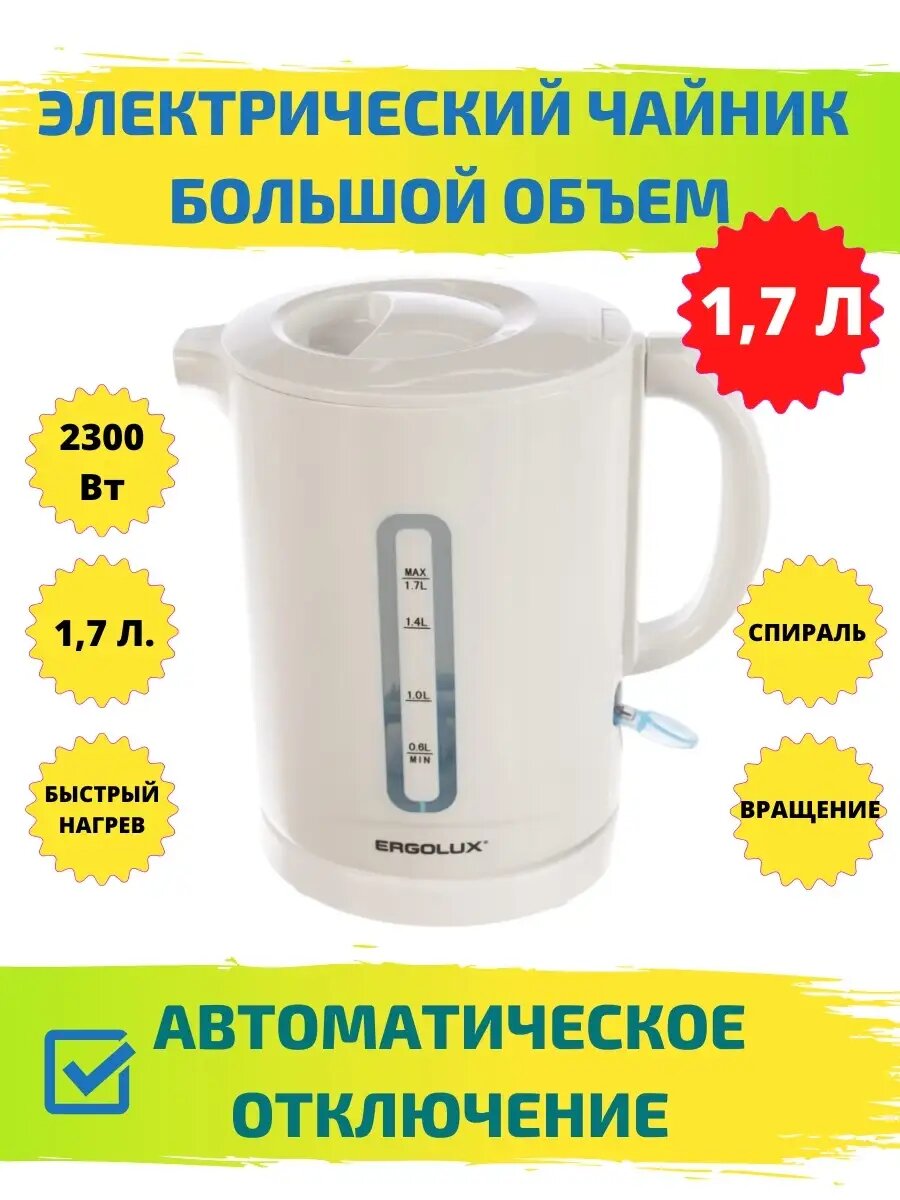 белый (чайник пластиковый, спираль, 1.7л, 160-250В, 1500-2300Вт), ERGOLUX ELX-KH01-C01 (1 шт.)
