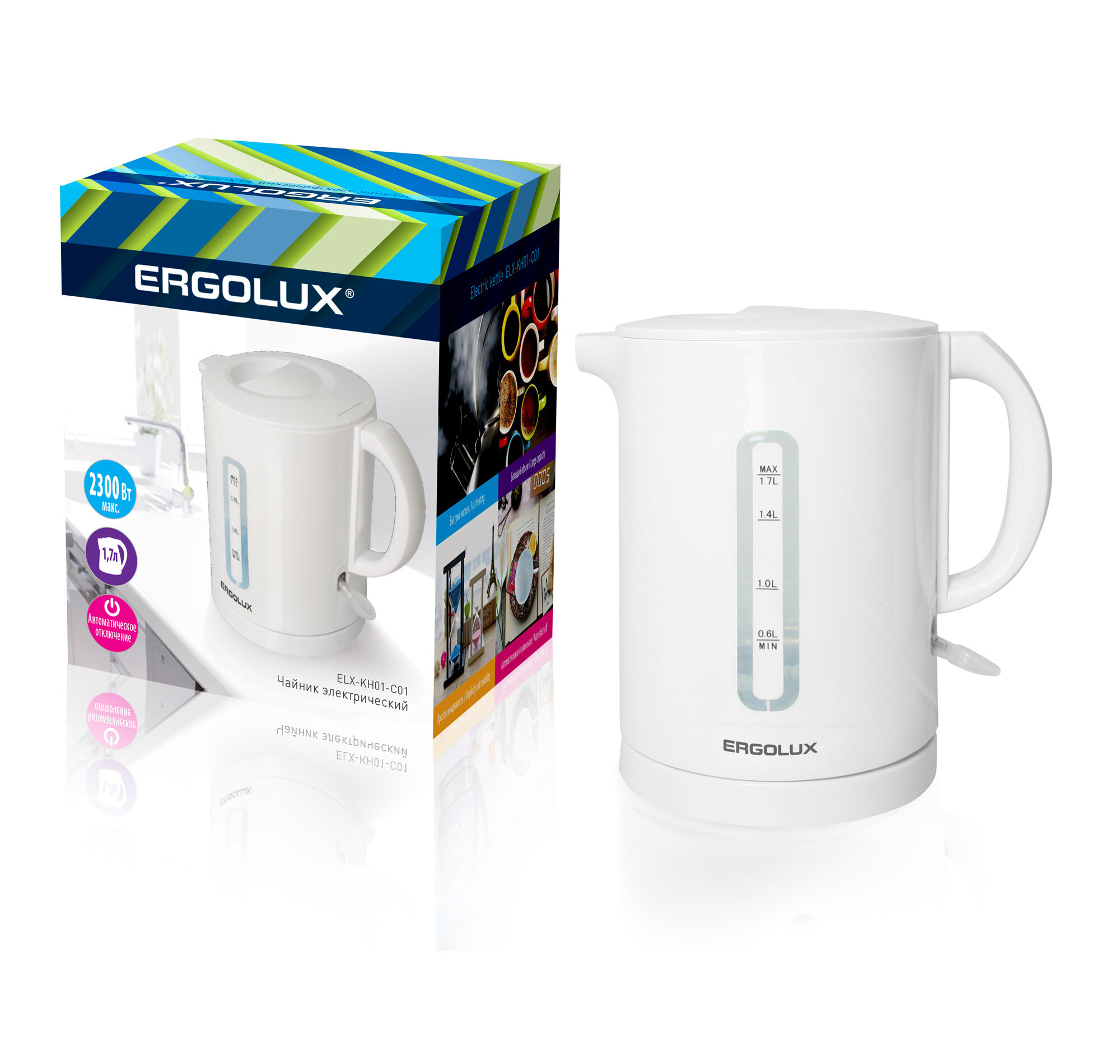 Купить Чайник ERGOLUX ELX-KH01-C01 белый пластик 1.7л, 160-250В, 1500-2300Вт